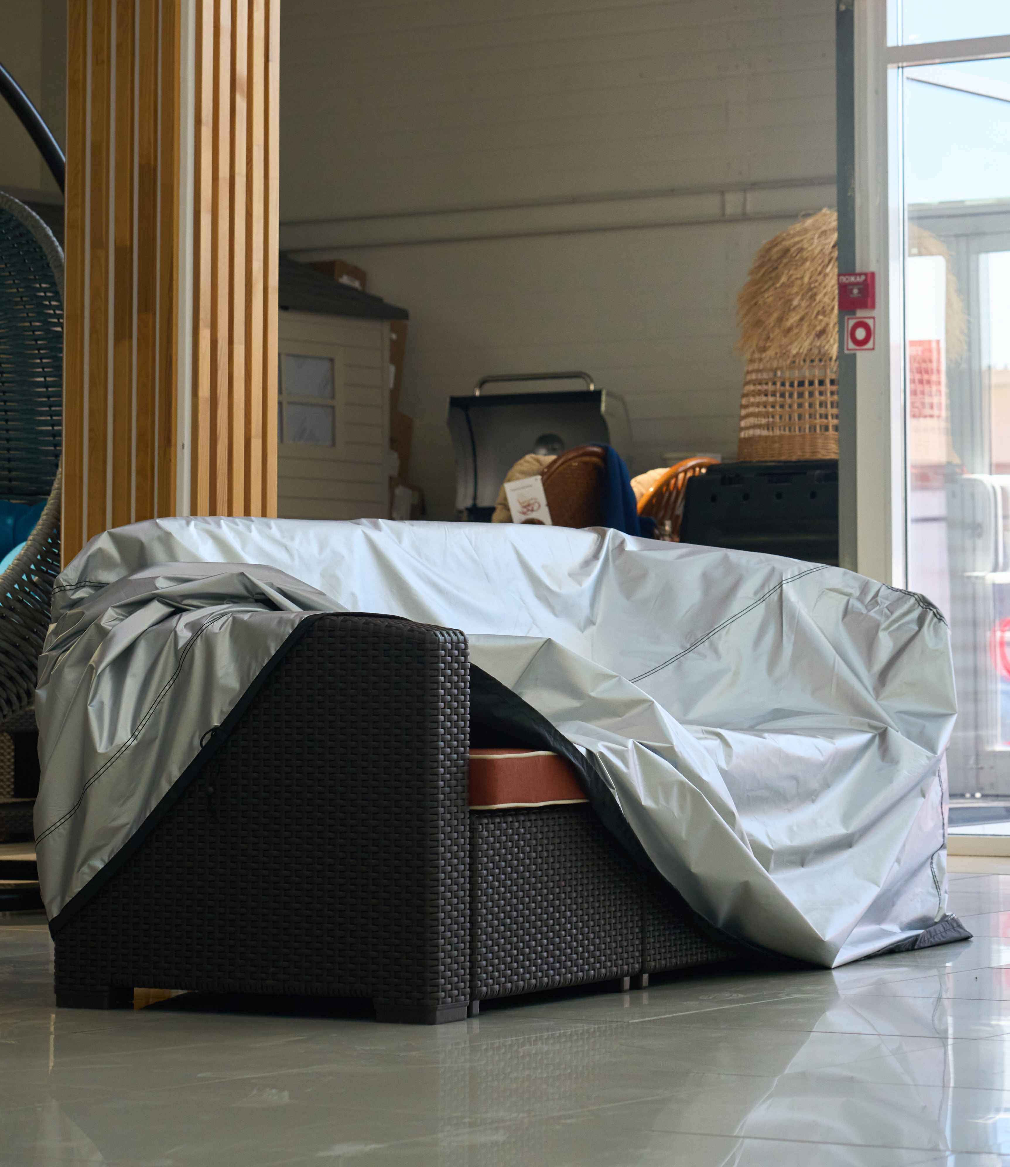 Чехол для уличного дивана 205х85х85(65) см черный + серебристый