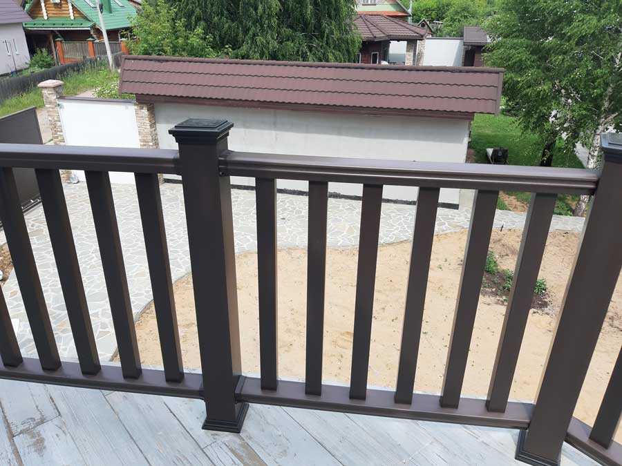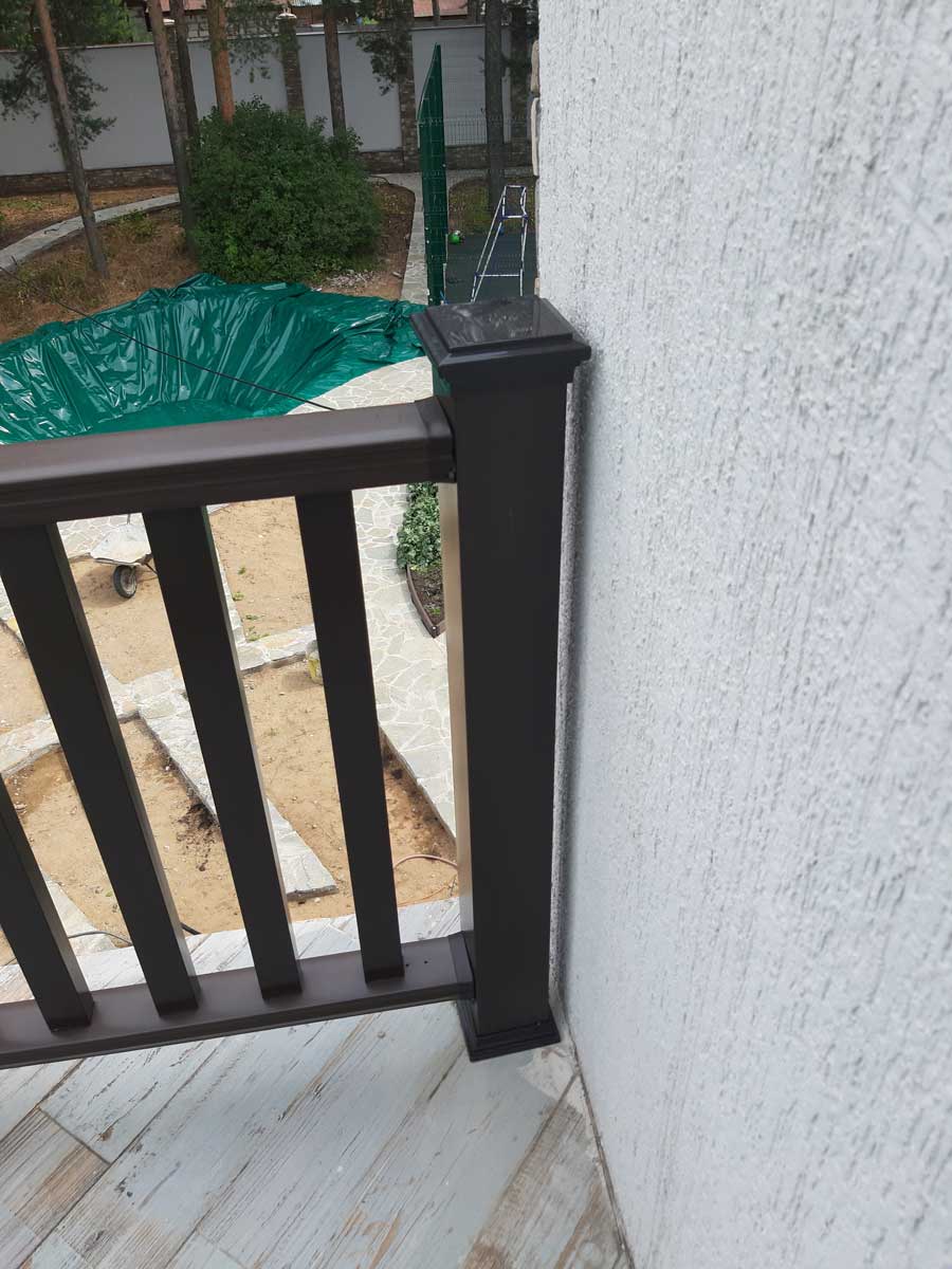 Произвели поставку и шеф-монтаж ограждений из ДПК Holzhof цвета венге (темный шоколад) на открытых площадках на 2-м и 3-м этажах частного дома.